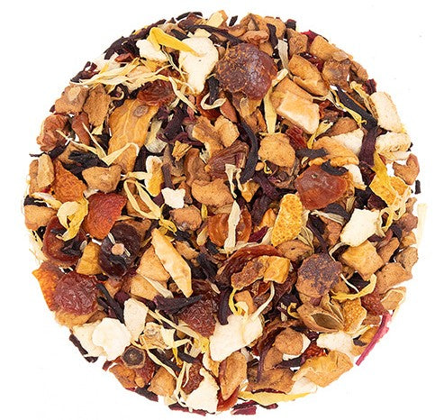 Apple pieces, Hibiscus petals, Rosehip + Orange pieces, Calendula petals, Natural flavors (organic compliant).