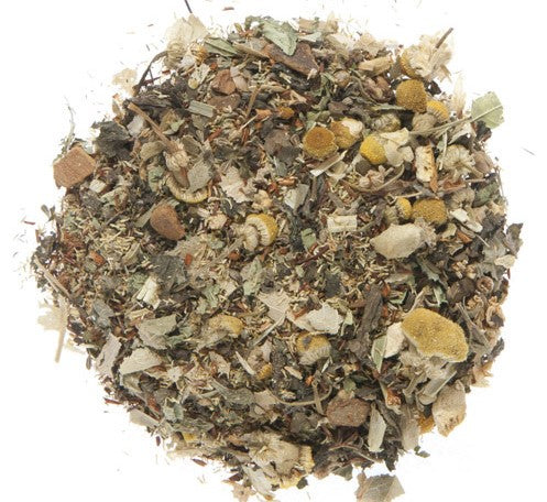 Camomile, Rooibos, Anise, Linden petals, Lemon balm, Orange pieces, Cinnamon, Lemon Verbena leaves, Passion flower.